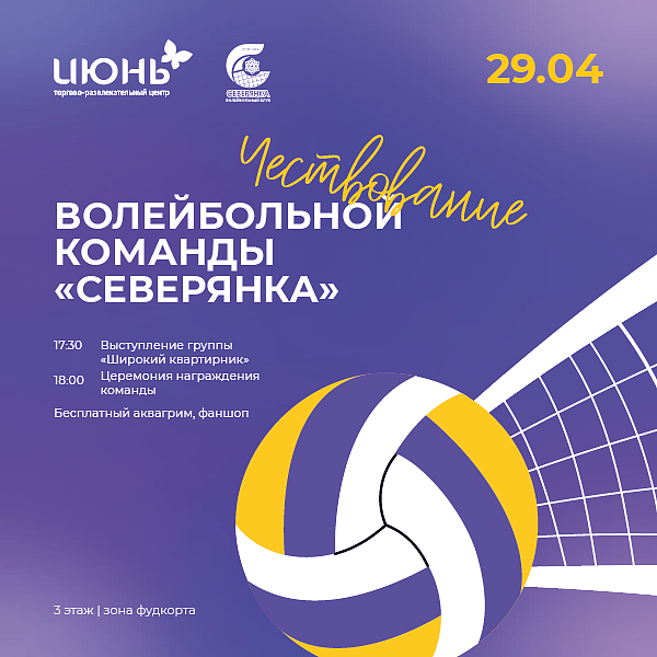 ТРЦ «Июнь» - один из крупнейших торговых центров в г. Череповец. Здесь представлен большой выбор магазинов с самыми разными категориями товаров. Для гостей работают семизальный кинотеатр, фитнес-клуб, детский центр приключений, парк виртуальной реальности, ресторанный дворик, , присутствует крупный гипермаркет, теплая подземная парковка.