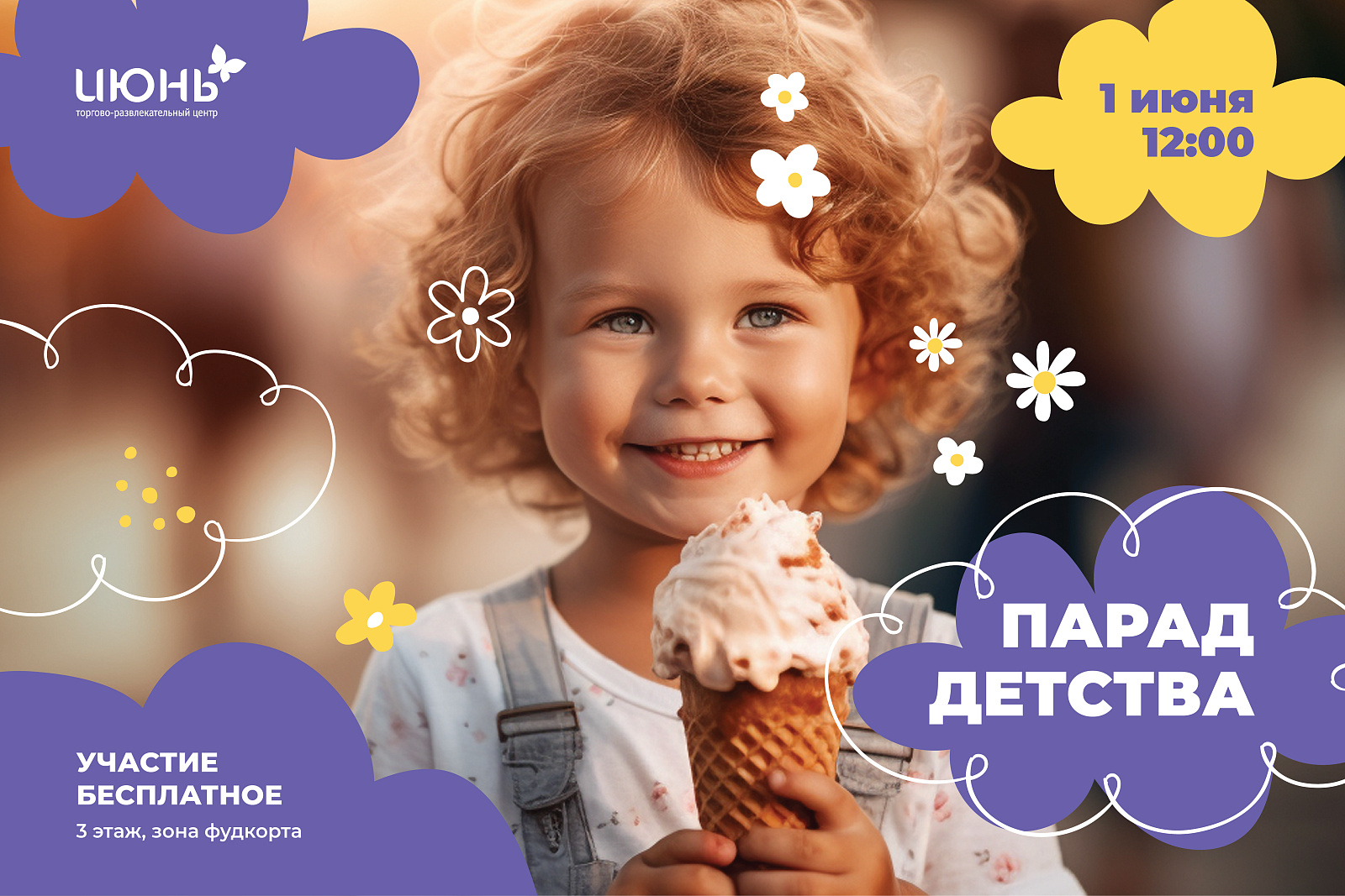 В честь Дня защиты детей мы сделаем настоящий «Парад детства», где для детей будем много их любимых героев, сладости, шарики, развлечения, мастер-класс, дискотека.